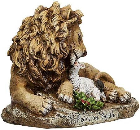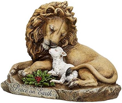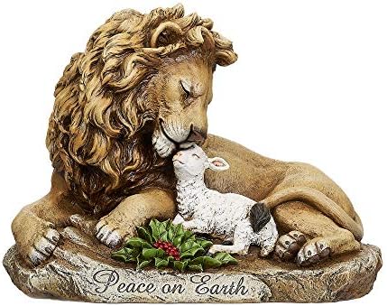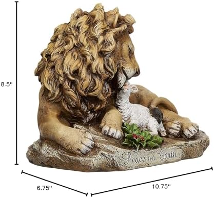 This exquisite statue showcases the lion and the lamb, representing the dual personas of Jesus—the “lion” as the Messiah and the “lamb” as the ultimate sacrificial figure. This powerful imagery embodies the spirit of generosity and kindness associated with the holiday season. The inscription on the base reads, “Peace of Earth,” further enhancing its meaningful message.
